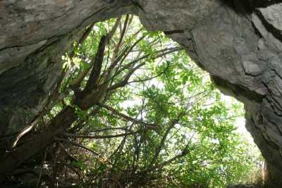 9323. The entrance is hidden in a large fig bush