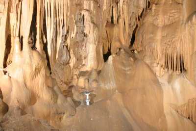 9312. Dripstone altair above the passage, view out