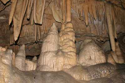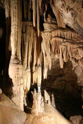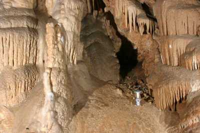 9307. Dripstone cascades to the left of the final descent, view in