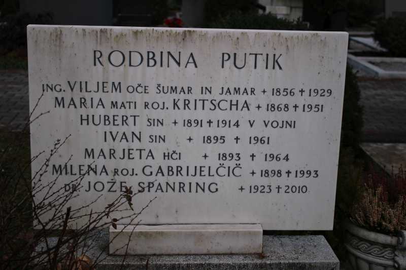 23963. Not far away, to the southeast of the small church at the entrance to Žale cemetery, the grave of Viljem Putik, the great ancestor of modern caving in Slovenia, is also situated.