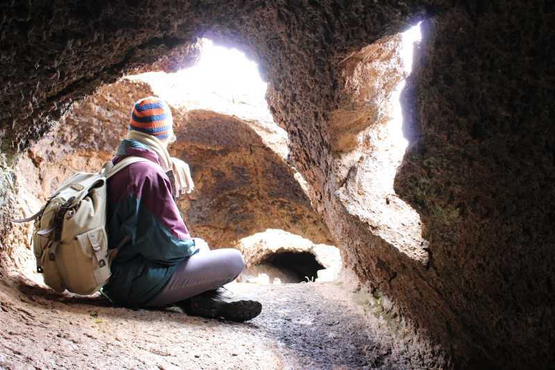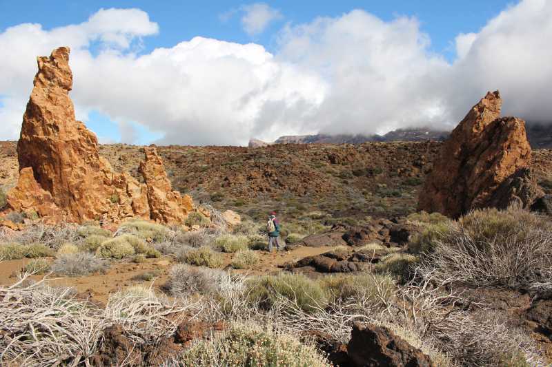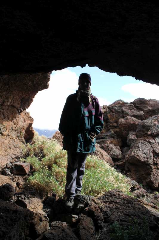 The caldera of the ancient volcano, Las Canadas, at 2000 meters a. s. l. and above, is part of the Teide National Park (Parque Nacional del Teide) and offers numerous sites of great interest to visitors. One of them is Roques de Garcia, a group of monumental rock towers. To the north of this group, on the slope of the Pico Viejo (3.135 m), a large field of Pahoehoe-type lava is to be found, and in it quite a few volcanic caves, lava tubes. Most of them are small, two are larger and longer. For a cave fan they provide a nice distraction on the ascent from Roques de Garcia to Pico Viejo (4 hours, trail 23) and they are easily located. Cave names on this page have been given by the author.