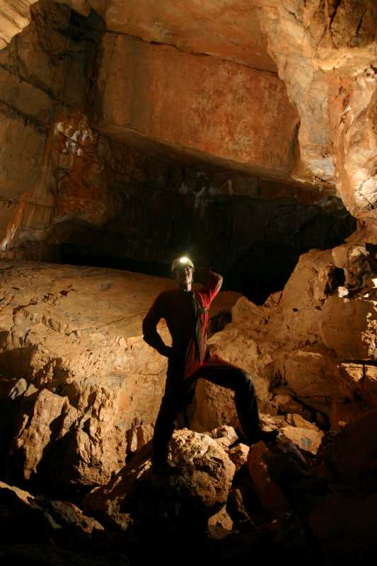 25041. Andrej is sitting on the traverse, awaiting the returning party - to make the traverse more difficult, they will bypass the end of the traverse by a squeeze in front (left) of him.