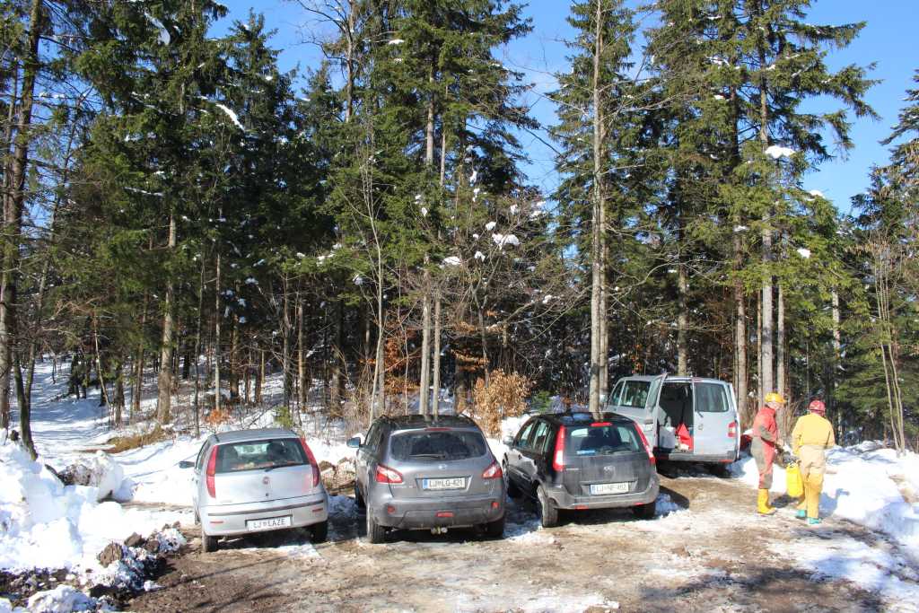 28832. Clearing at the end of the forest road (it continues with two narrower tracks, to Vranja and Najdena jama), cleaned of the snow, as well as the entire road, by Marjan Kolar