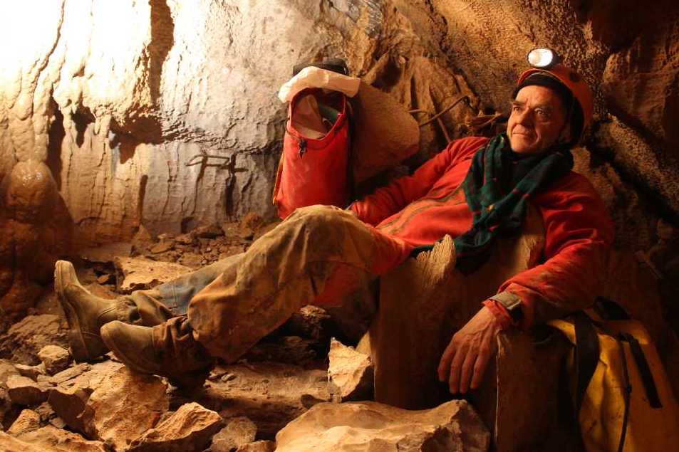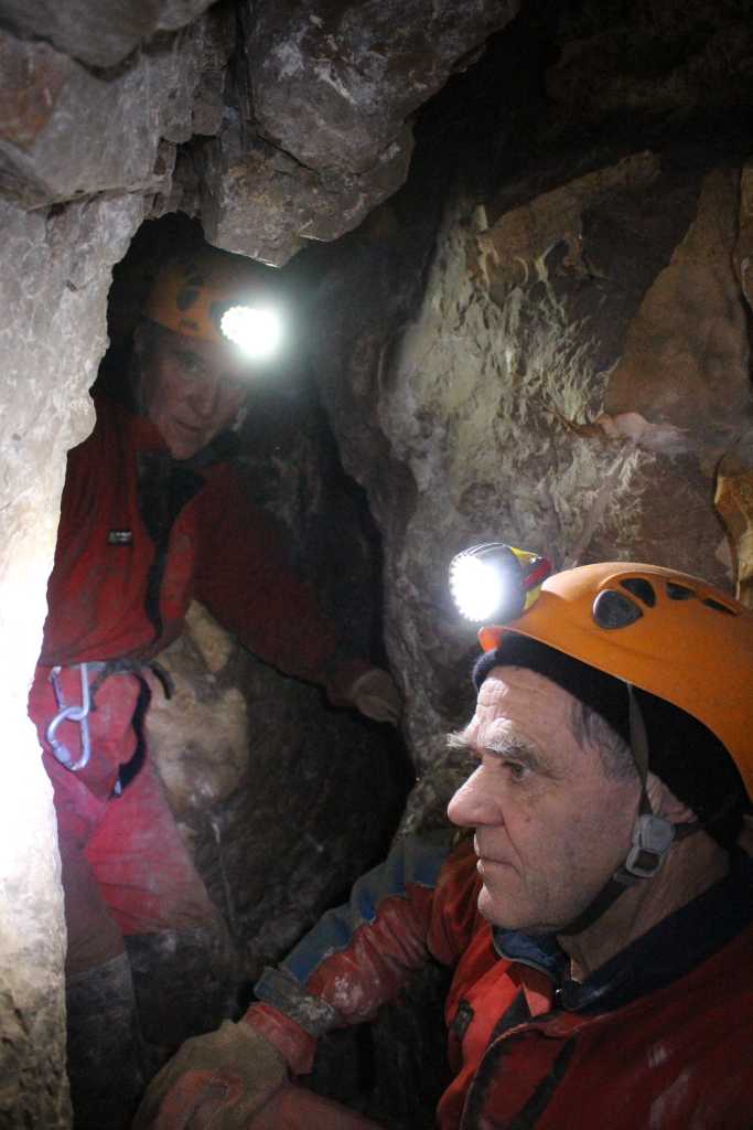 28848. Andrej joined the party in the afternoon, at the best possible time, impressed by how Stari described the Galacijevka developments on Thursday's meetings of the grotto. Andrej's face is a good witness that the shaft from the surface to the work site was today even more muddy and wet than ever, trickles of water were pouring down from all sides and there was no way to avoid them, especially in the two vertical squeezes. Melting snow turned all the earth and clay from the entrance down into soft, jelly-like mud.