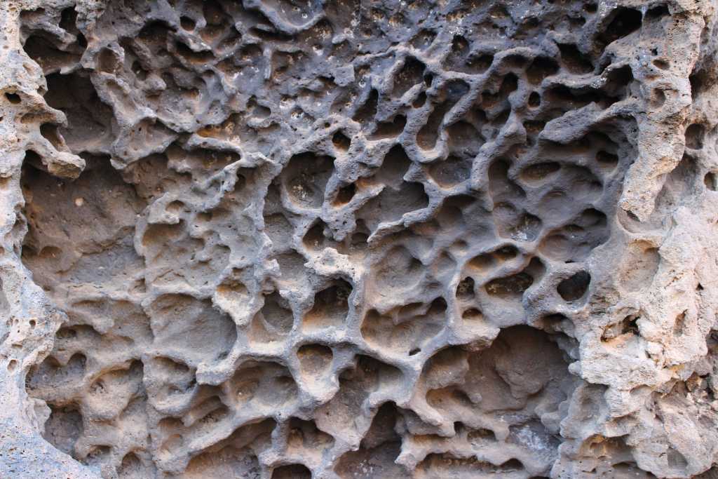 29797. Close view of part of the wall where lava solidified in a honeycomb-like form