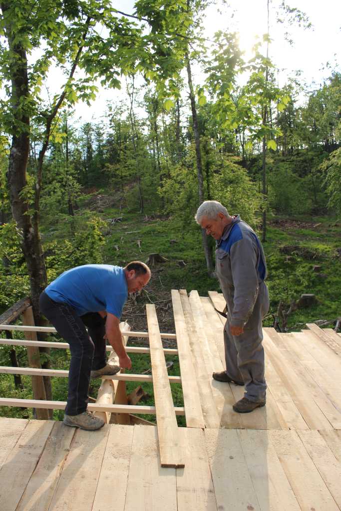 30121. The second of the four lateral supports of the awning is being put to shape: Gregor, Žan and Ile.