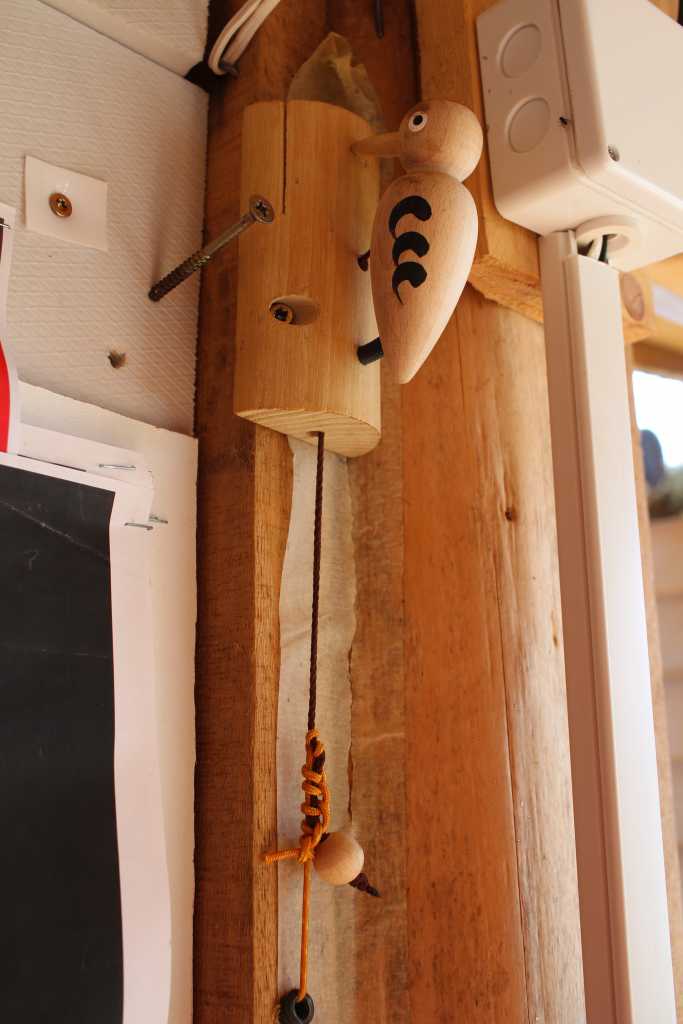37043. Ičo, the only professional artist of the team, also provided a wooden door bell. Here its handle, held by Ile, is seen in idle (horizontal) position ...