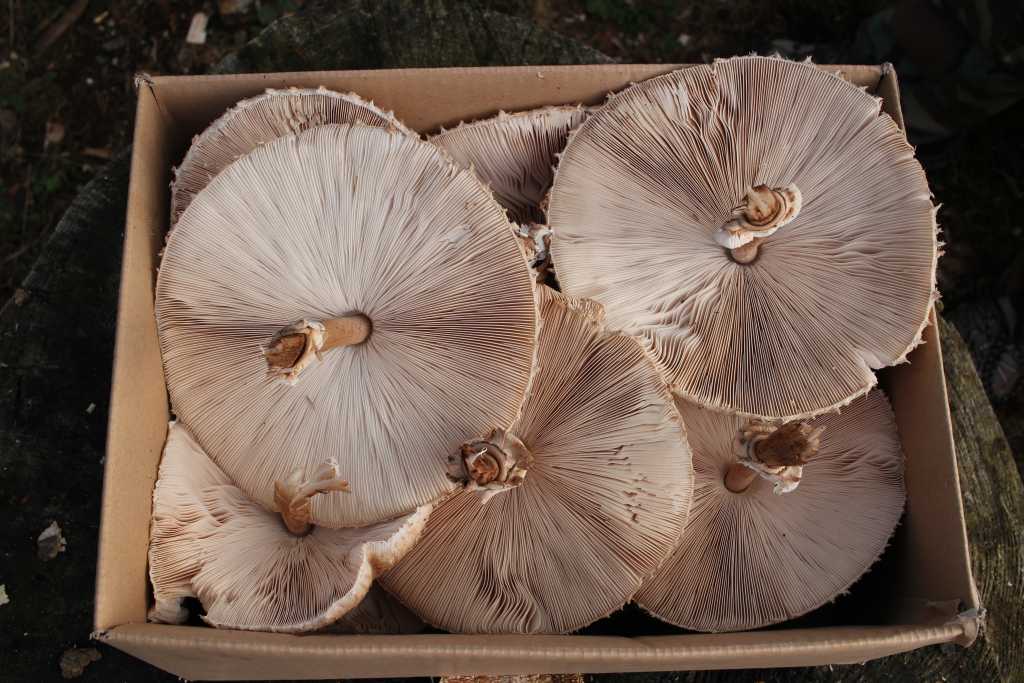 37074. Parasol mushrooms, Macrolepiota procera, dežnikarice in Slovenian sprang out of the soil after the rainy Monday and Tuesday in many, many places. This basket was collected by Mare, ...