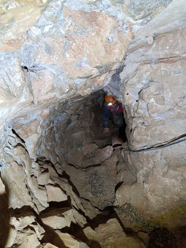 42673. Metod is ascending to the bend in the tunnel, above the collapse ...