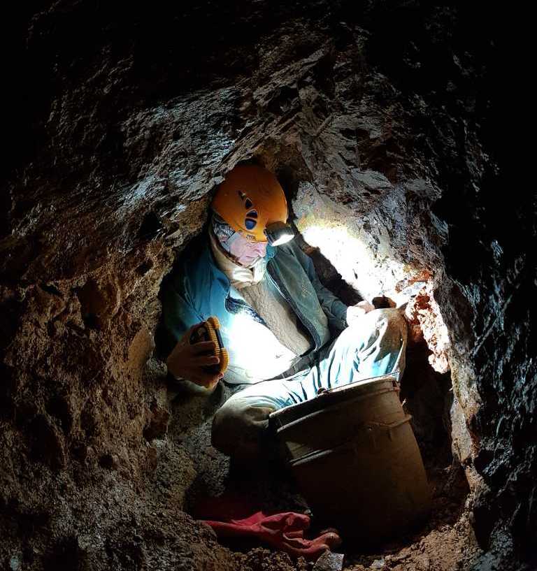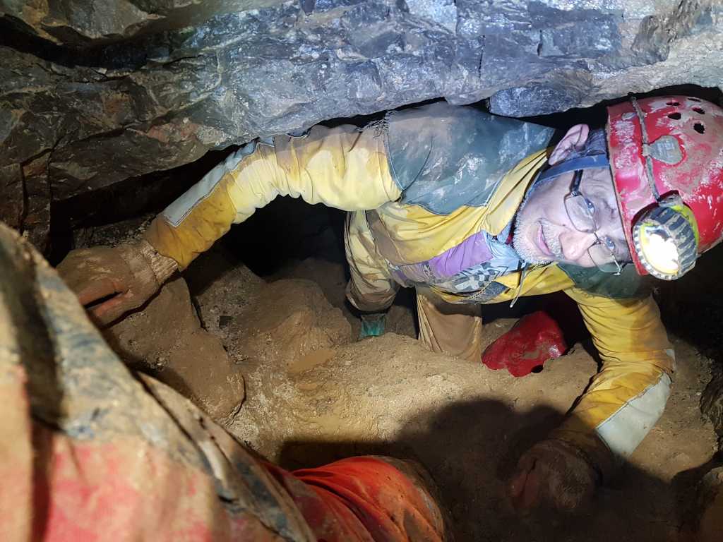 42860. After careful examination of the site he noticed that the calcite-glued small rocks of the collapse at the left side are solid enough to allow safe digging while the rock to the right, which Manč was crushing piece by piece, is an order of magnitude harder. So he took the crowbar at the right and in 45 minutes managed to excavate (without hard effort) ...