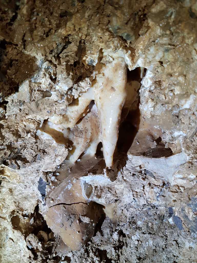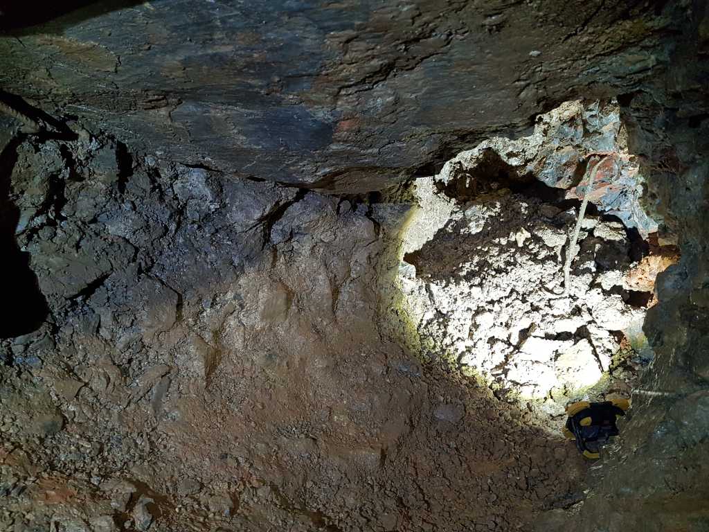42864. ... the pile shown above. It is estimated at 6 buckets. Continuing to excavate the material at the border of hard rock would very probably shorten the digging time several times. It is also interesting to note that a large rock surface appeared in the soft calcite/rock side (80 x 80 cm, center right) which makes the front smaller and supported fropm one more side.