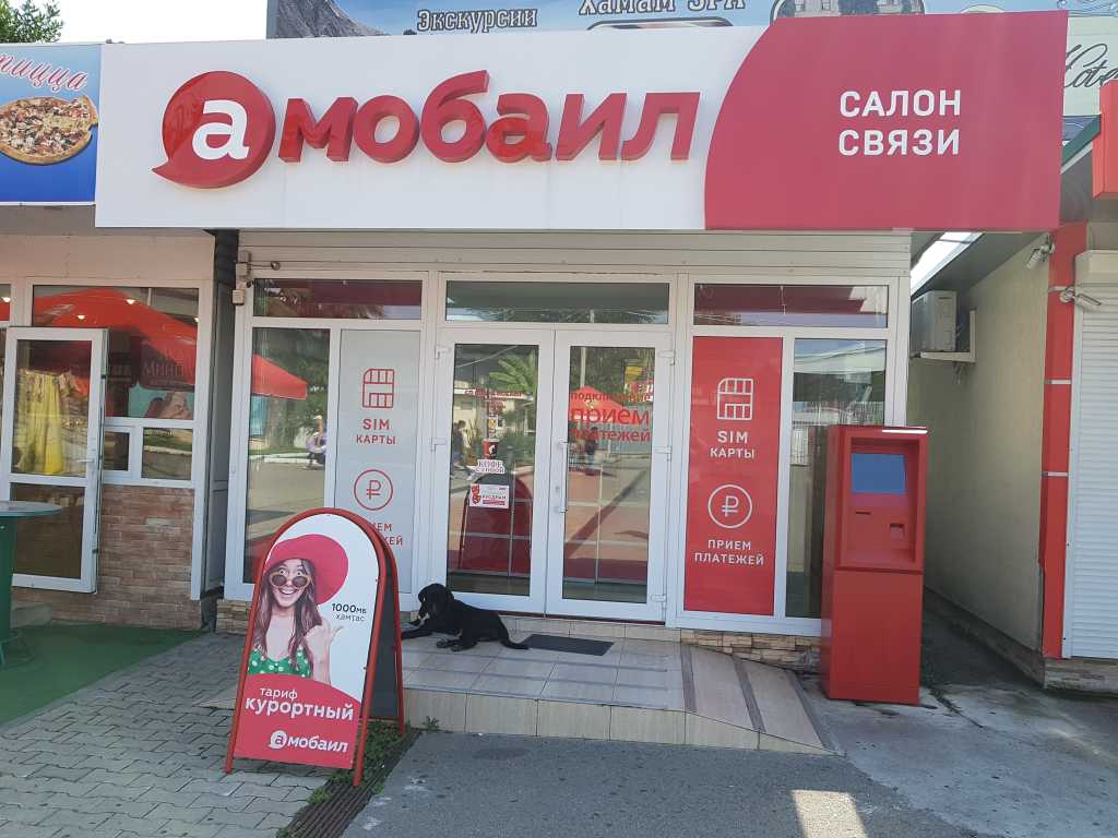 45155. Офис одного из двух основных операторов сотовой связи в Абхазии (другой - Аквафон). К сожалению пакет «все включено» с достаточным количеством SMS, временем звонка и интернет-передачей не мог отправить SMS в западную или центральную Европу, и не было сигнала на горе, где был сигнал только русских операторов.