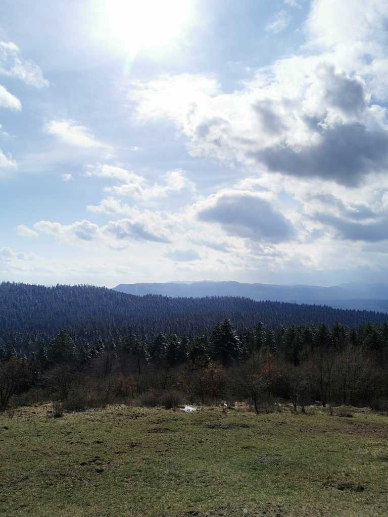 50984. Вид на гору Нанос с облаками и солнцем.