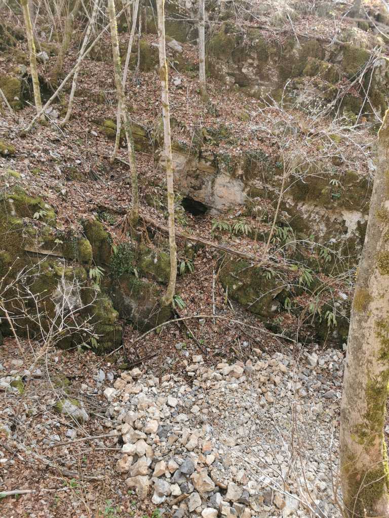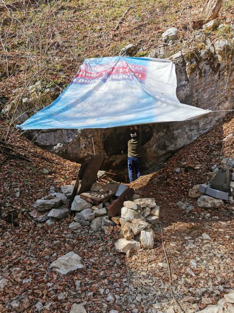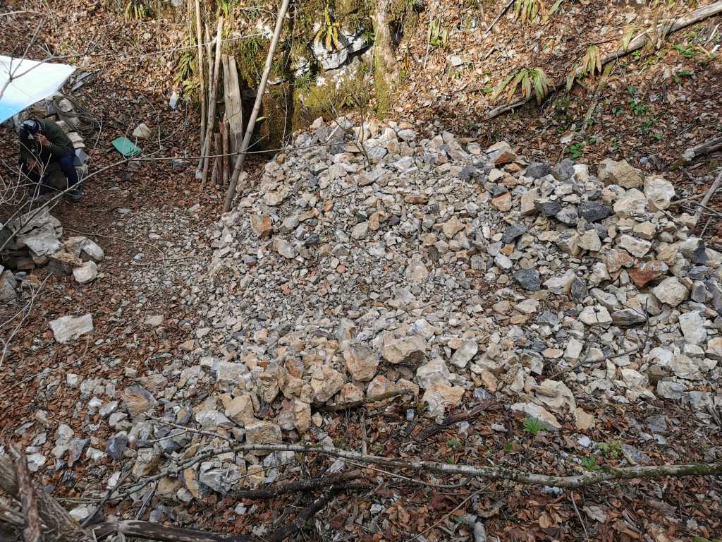 50994. Вход в пещеру Радошца 2, раскопки находятся на дне шахты под стеной, вид с завальной долины Радо Радешчек.