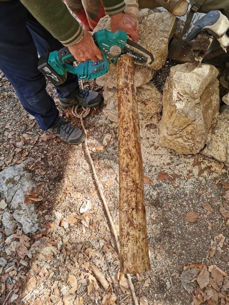 51003. Обрезка части ствола ели перед входом, будет опора в нижнем тоннеле