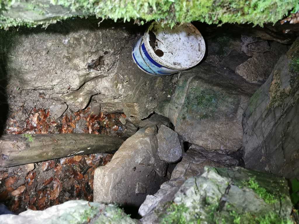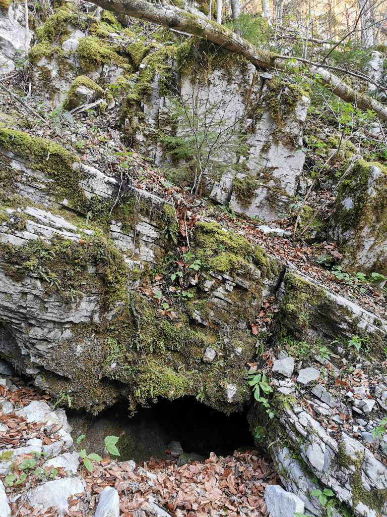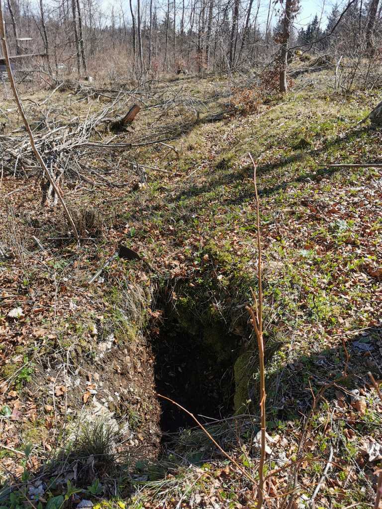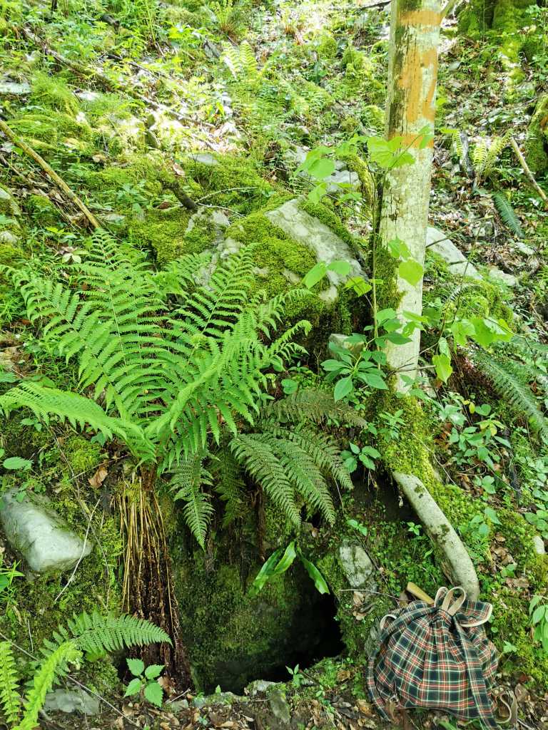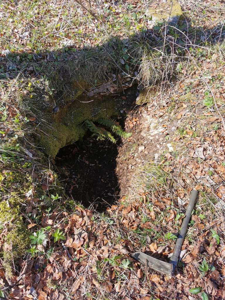 52382. Владимир также нашел верхний вход, где ветераны копали в 2015 году. Сказал Франце, что здесь были по крайней мере спелеологи из Боровницы и Логатца, и ребята из Боровницы тоже копали. Наверное, еще кто-то. Место важно, потому что, по мнению Франца, это продолжение Ветровной ямы за кукавой, в направлении Пущи (что дальше на ЮВ, прим. автора). Вход был сильно завален сухими ветками, которые мы убрали, кроме упавшего граба, который теперь растет над входом. Вход открыт на склон, поэтому сползающий зимой снег тащит с собой и камни, и в входу стоит куча, которая закрыла проход вглубь заброшенного участка работ.