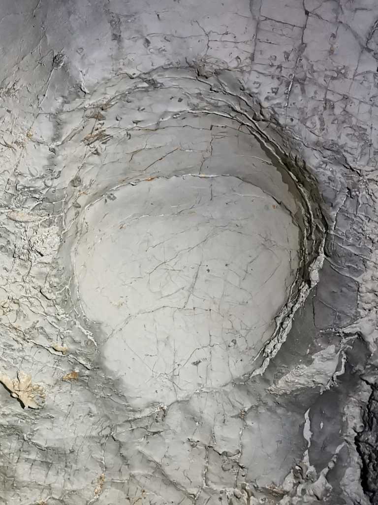 52301. Круглое потолочное углубление длиной около 80 см (в высоту) в виде полусферы справа от столба с предыдущего фото