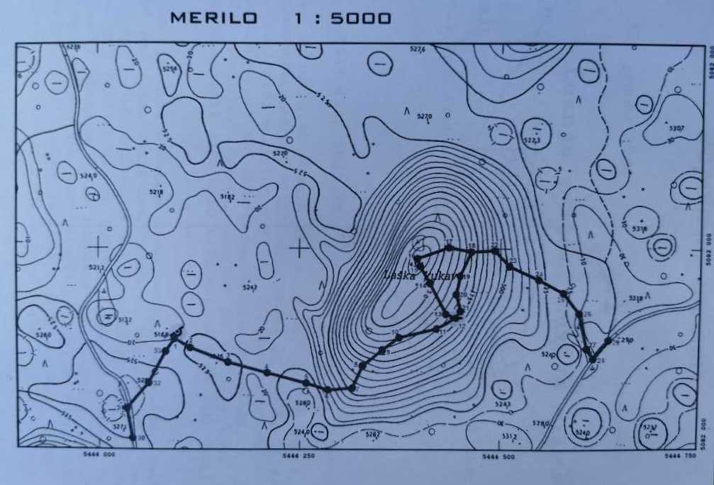 И если сегодня нет большой пещеры на Равнике, сравнимой с пещерами в Ланском верхе - Vetrovna jama (Ветровая пещера), которая является самой большой, а также в ней находится и короткий подземный ручей, имеет длину всего 55 метров и глубину 34 метра - долины обвала, Лашка кукава объемом около 4 миллионов кубометров является самой большой, свидетельствуют о том, что рано или поздно здесь будет обнаружена крупная пещера. В Лашкой кукаве, дно которой находится на высоте 436 метров над уровнем моря, а край на высоте 525 метров, Тужак во время зимних походов около 2000 года обнаружил большую площадь талого снега. Площадь находилась на юго-западной стороне кукавы, и в его нижнем углу, примерно на высоте 480 м над уровнем моря, был отдушник, который и является предметом сегодняшней экскурсии. 12 декабря 2004 г. Францe и Игорь Максим Кошир сделали топосъемку, полигон с 33 точками, от дороги к западу от кукавы мимо входа в Ветровную яму до отдушникa в самой Лашкой кукаве, до дна кукавы и снова вверх, до дороги к востоку от кукавы. Позже отдушник был утеряный и снова найден в конце зимы 2015 года. Тогда ветераны, которые сейчас копают в Радошце 2, решили копать отдушник до тех пор, пока не откроется пещера. Как отправную точку они выбрали место над отдушником, по диагонали вверх, примерно на 20 метров выше. Это выглядело как более легкий раскоп, потому что не был в твердой скале, и они надеялись добраться до стене в ближайшее время. После нескольких экскурсий они достигли глубины около 10 метров, все еще были в завале, и сплошной стены не было видно. Из-за опасности рассыпания крупных камней команда отказалась от дальнейших раскопок. Упомянутый многоугольник также показан на этом рисунке, который автору предоставил Франце. Отдушник находится в точке 12, на южном пересечении многоугольника.