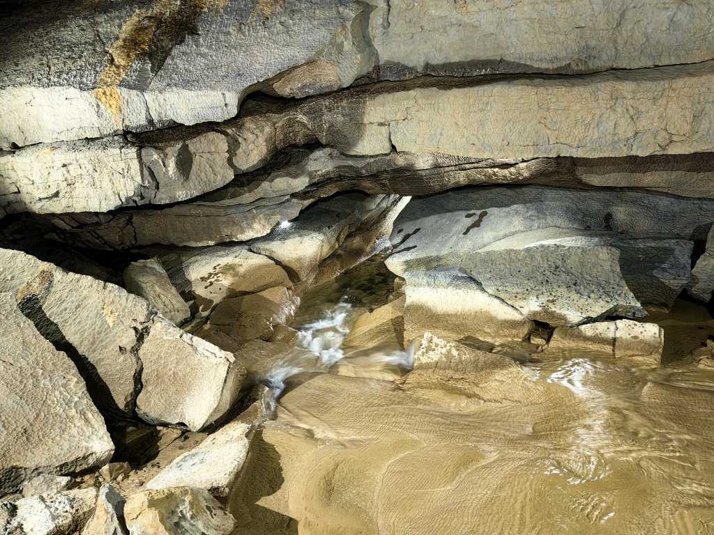 53199. Часть воды перетекает из Четвёртого в Третье озеро по этому водосбросу в боковой нише на вершине Третьего озера, ...