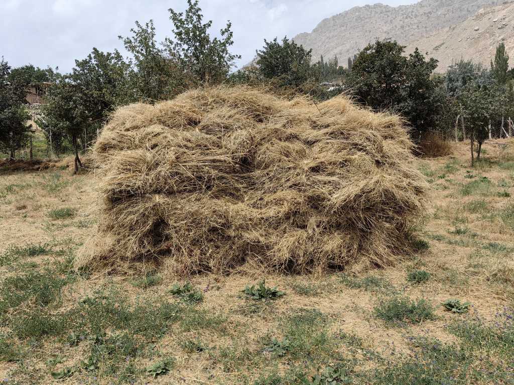 54110. Stacked bundles of hay in the meadow above the cemetery, to be carried home by the donkeys.