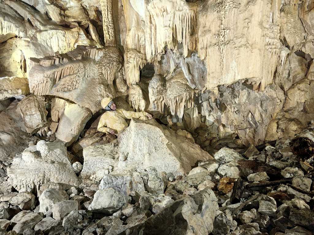54621. Место, где гравийный завал в Главном Зале пещеры превращается в тоннель с натёками.