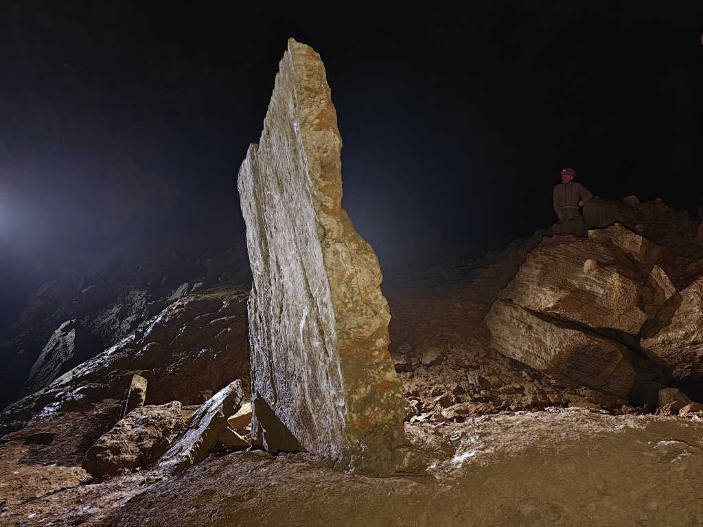 54648. Памятник (Spomenik) в Зале Конгломерата - тонкая плита, которая, кто бы мог подумать, когда упала с потолка и почти вертикально воткнулась в землю.
