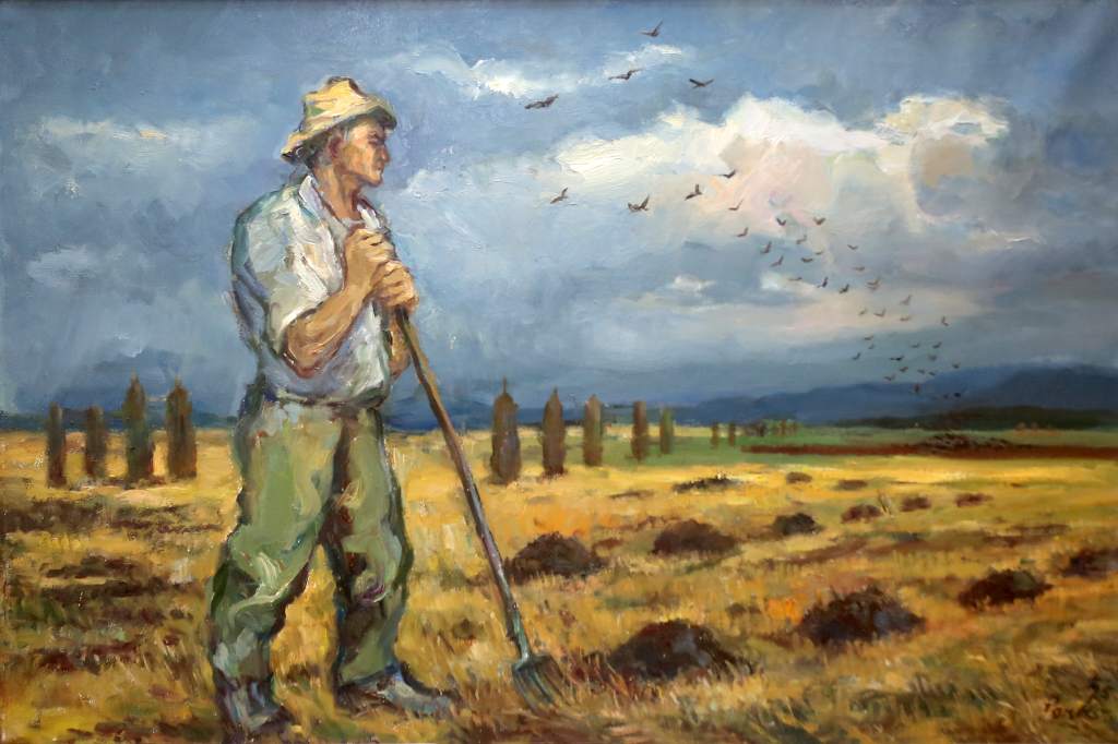 4. Kmet na njivi - 1975 - olje platno - 90 x 124 cm