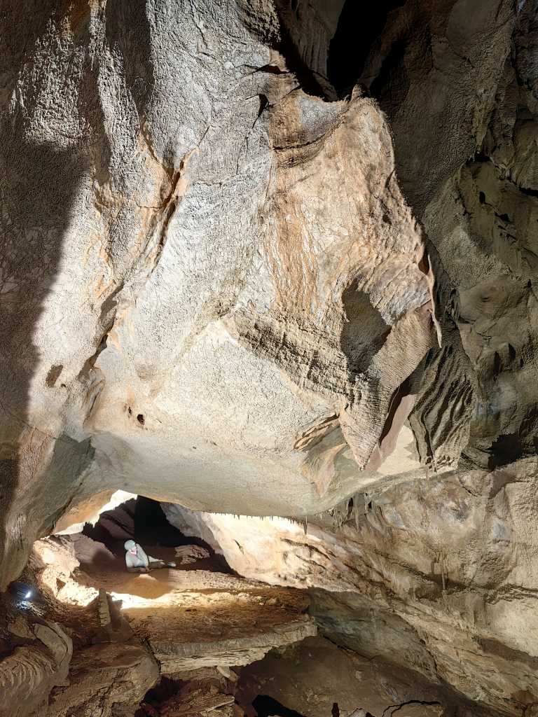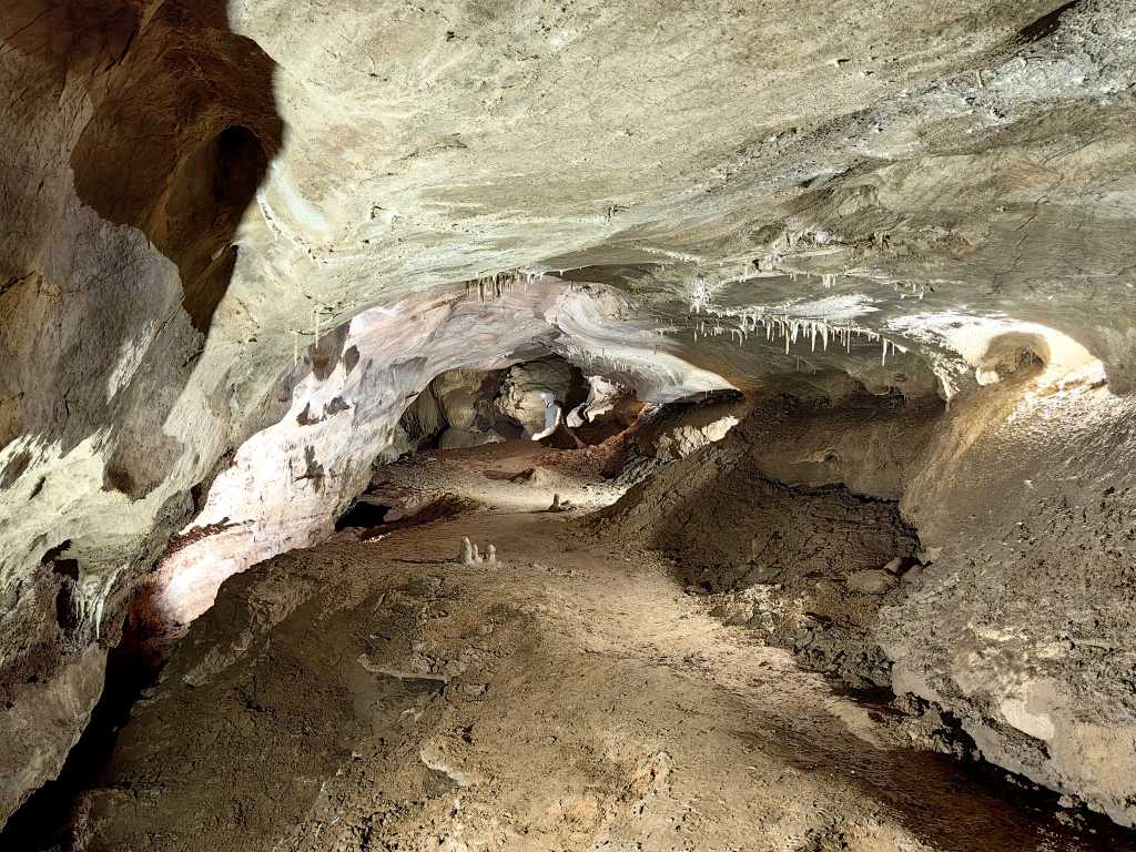 54807. Выступ скалы над проходом мимо Фонтана Шерко. На заднем плане - тоннель, где пещера продолжается на юг.