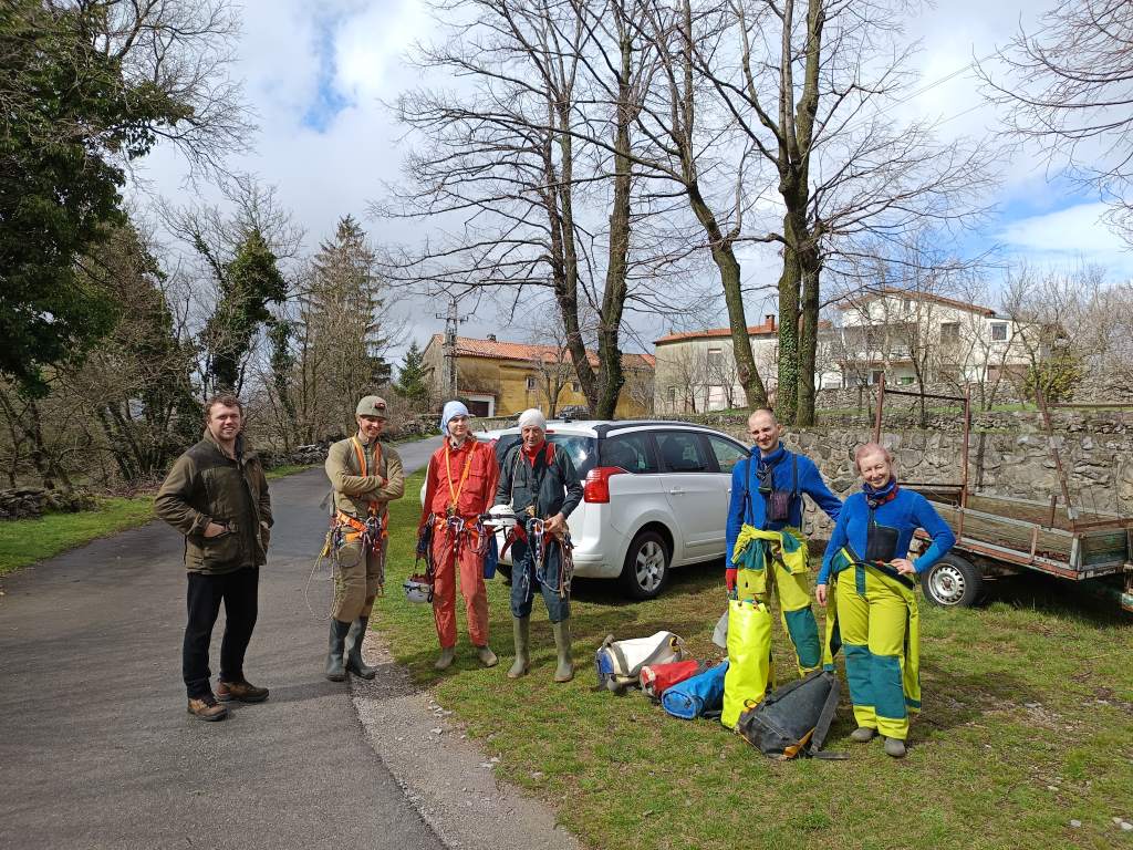 Matej e Ludvik Husu (dello Jamarsko društvo Sežana), Vladimir Levašov, Matic Prevec e Jakob Majdič (della