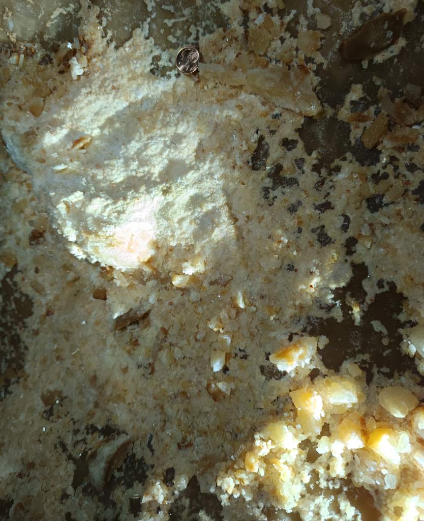 55104. Accecante concrezionamento che copre le pietre sopra il fondo della Sala.
