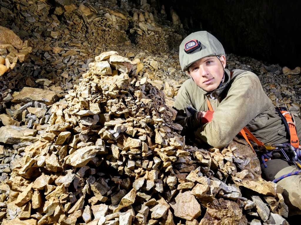 55105. La stalagmite più grande della Sala con la sua sorella più piccola; Jakob