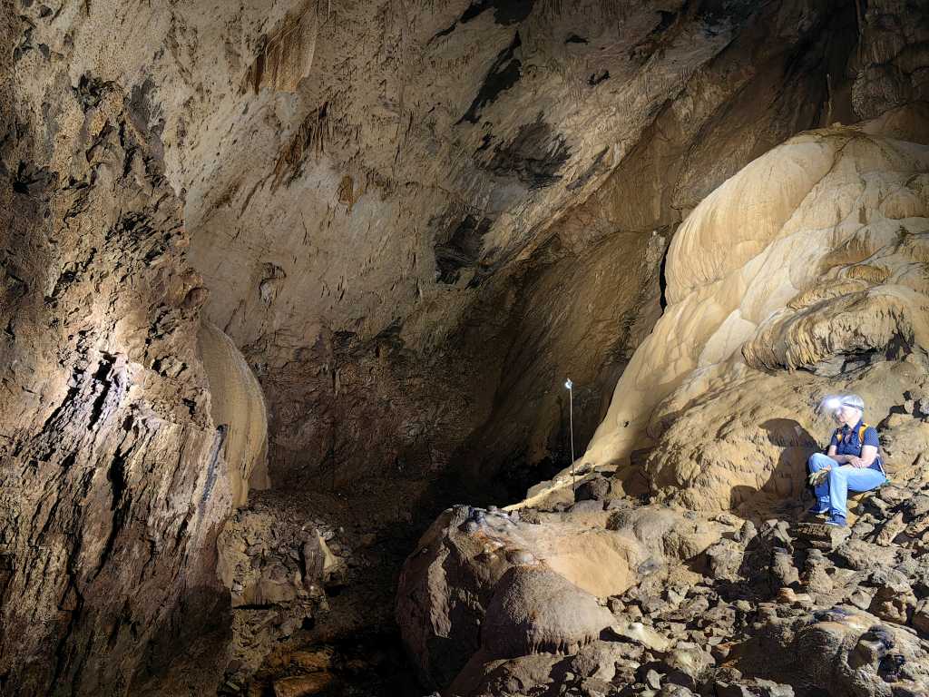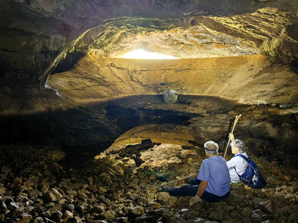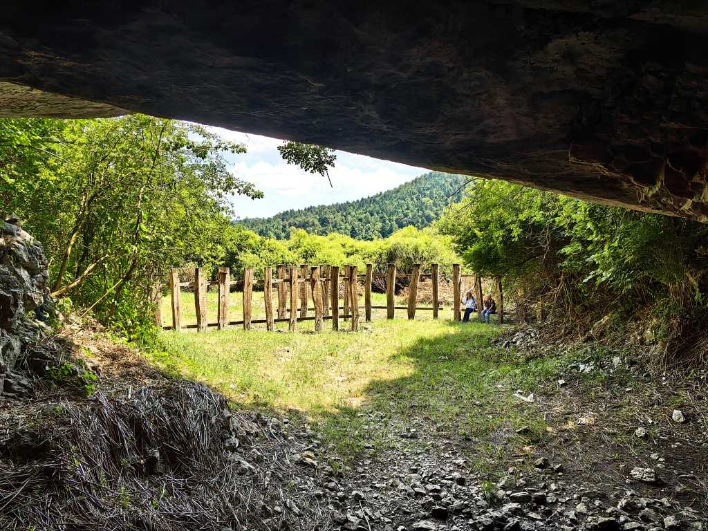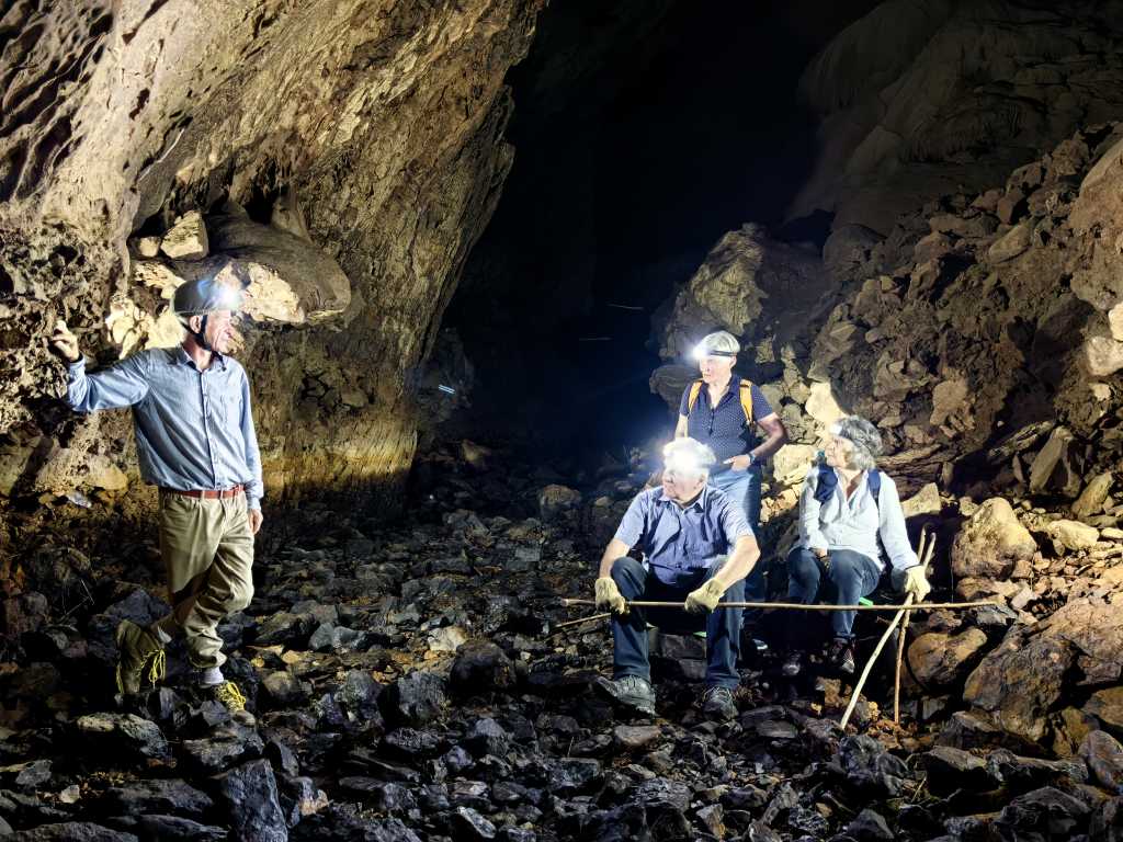 55662. В Буковчевом тоннеле, под залом Кальвария (справа вверху) - Синья, Франци и Радойка