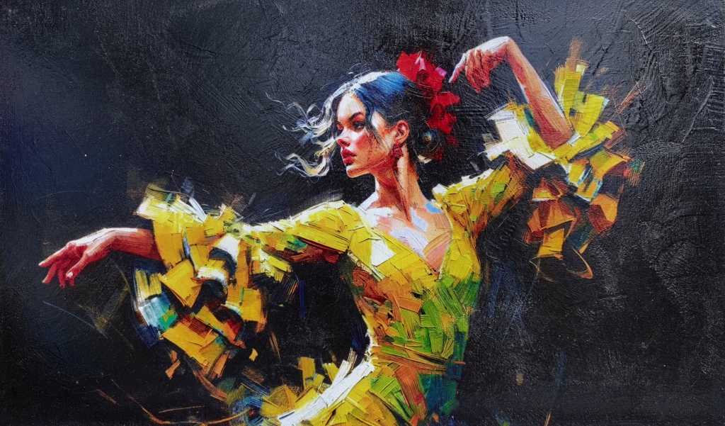 56827. Владимир Посипай: Танцовщица фламенко, 23 x 40 см, масло на картоне, 2026