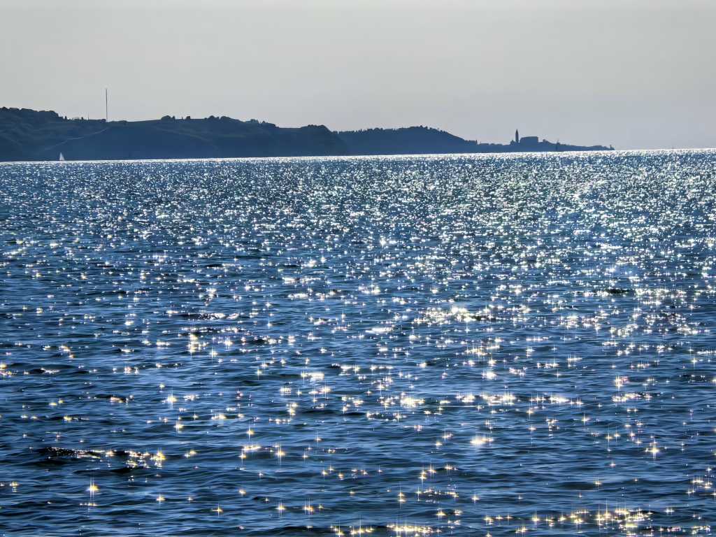56830. Вид на Коперский залив в конце дня с Пираном на горизонте