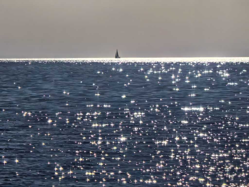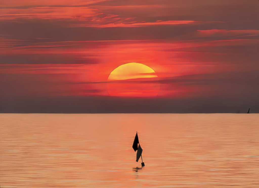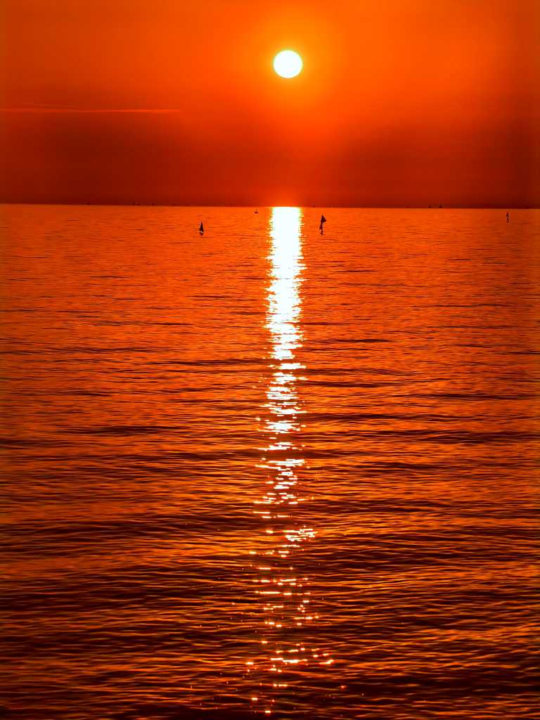 56836. Солнце с отражениями в море, близится закат, пять солнц над горизонтом