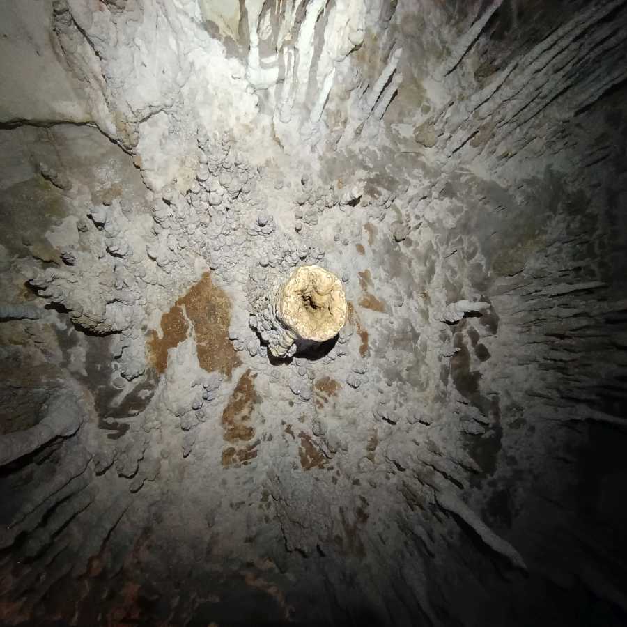 VL96. Even more interesting, however, is the ceiling above the heap; the author had never bothered to look at it before, but today Miha immediately found a strange stalactite there, the likes of which we had never seen before. This is how Vladimir recorded it.