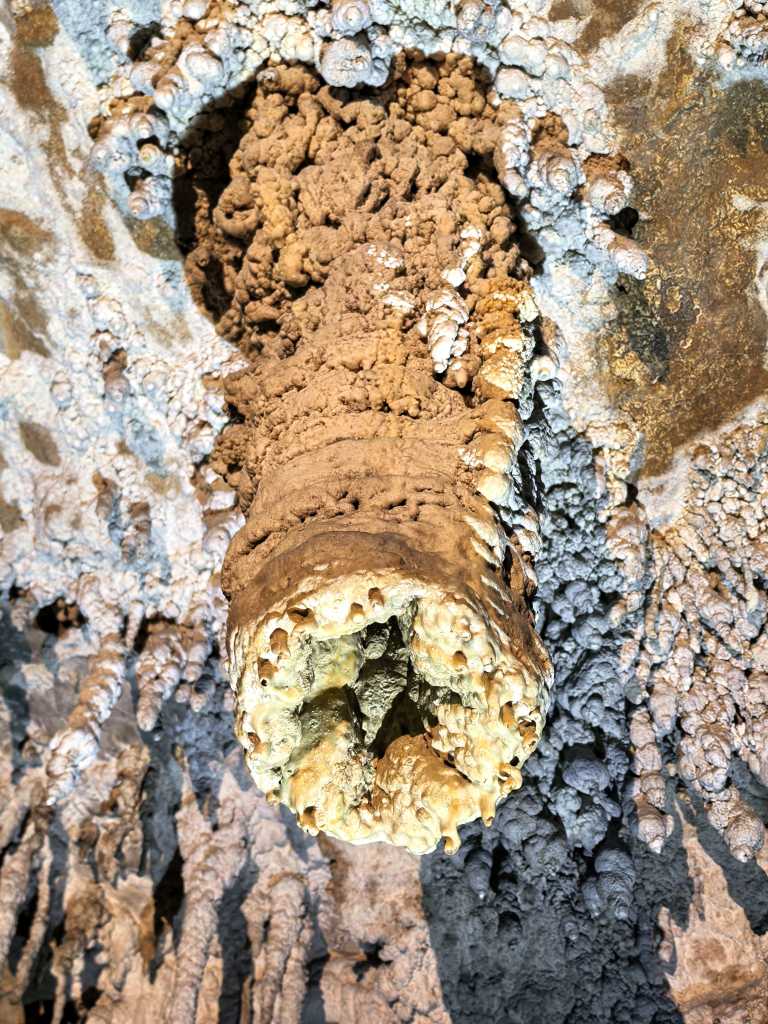 56841. The stalactite is round, hollow, little less than a meter long, and at the end ...