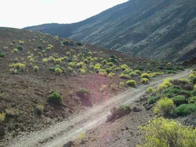 5355. The small unpaved road passes the northern side of Montaña Majúa,