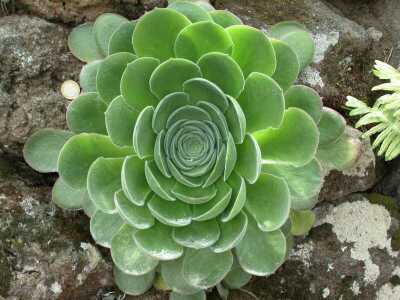 5234. Giant velvet rose, Aeonium canariense, in the field stone