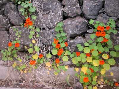 5376. Indian cress, Tropaeolum majus, at the side of the road