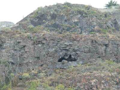 5315. A view from the beach to the cliff with Cueva de Punto Blanco entrance in the middle