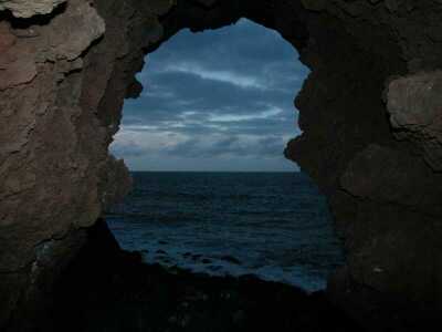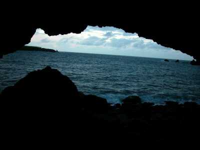 5371. Sea view from the first cavern on the beach, flash fill-in