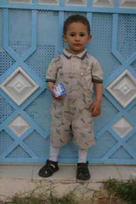 8644. Ahmed, the son of Mohamed Tiouiri, in front of the yard door