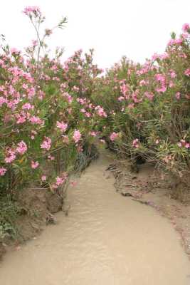 8649. Bird's eye view of Rhododendron blooms in the riverbed