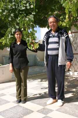 8749. Jamila and Mr. ?, owner of the Hotel de Relais, in the yard