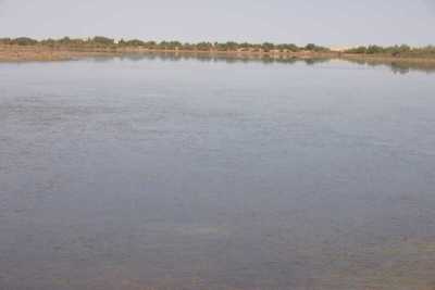 8791. The shallow sweetwater lake at the edge of palm plantation