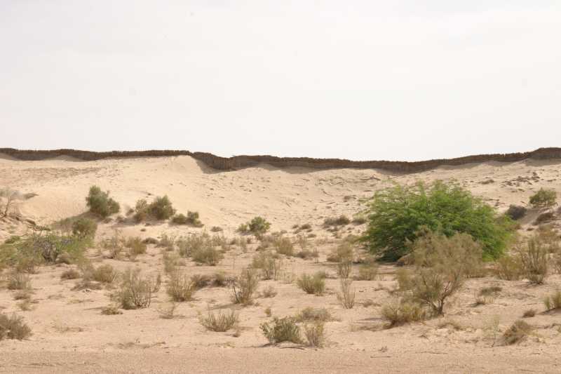 11777. Fence against floating sand to the right of the road Douz-Kebili