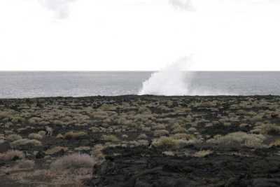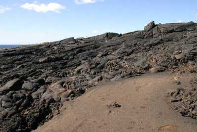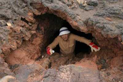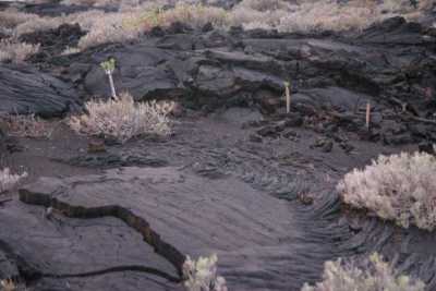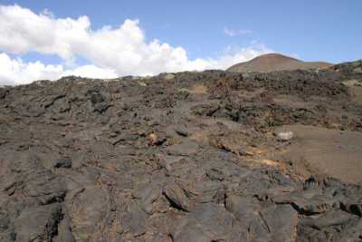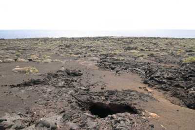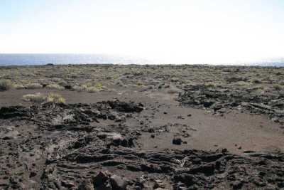 12242. Broken lava slabs with sparse vegetation close to the entrance