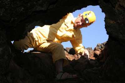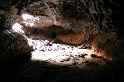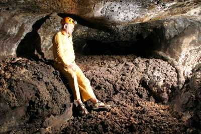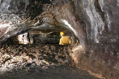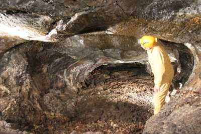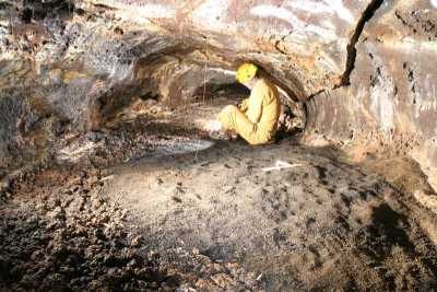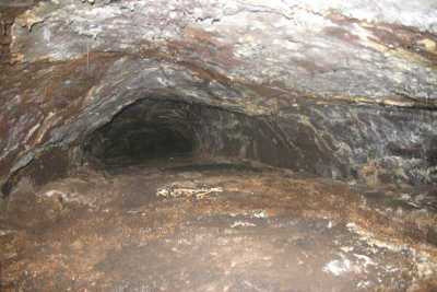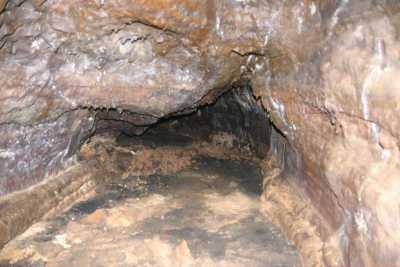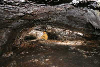 12320. Continuation of the tunnel is lower, with quite sharp lava floor; a view in