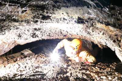 12326. Towards the end of the cave the roof descends to a squeeze; a view in